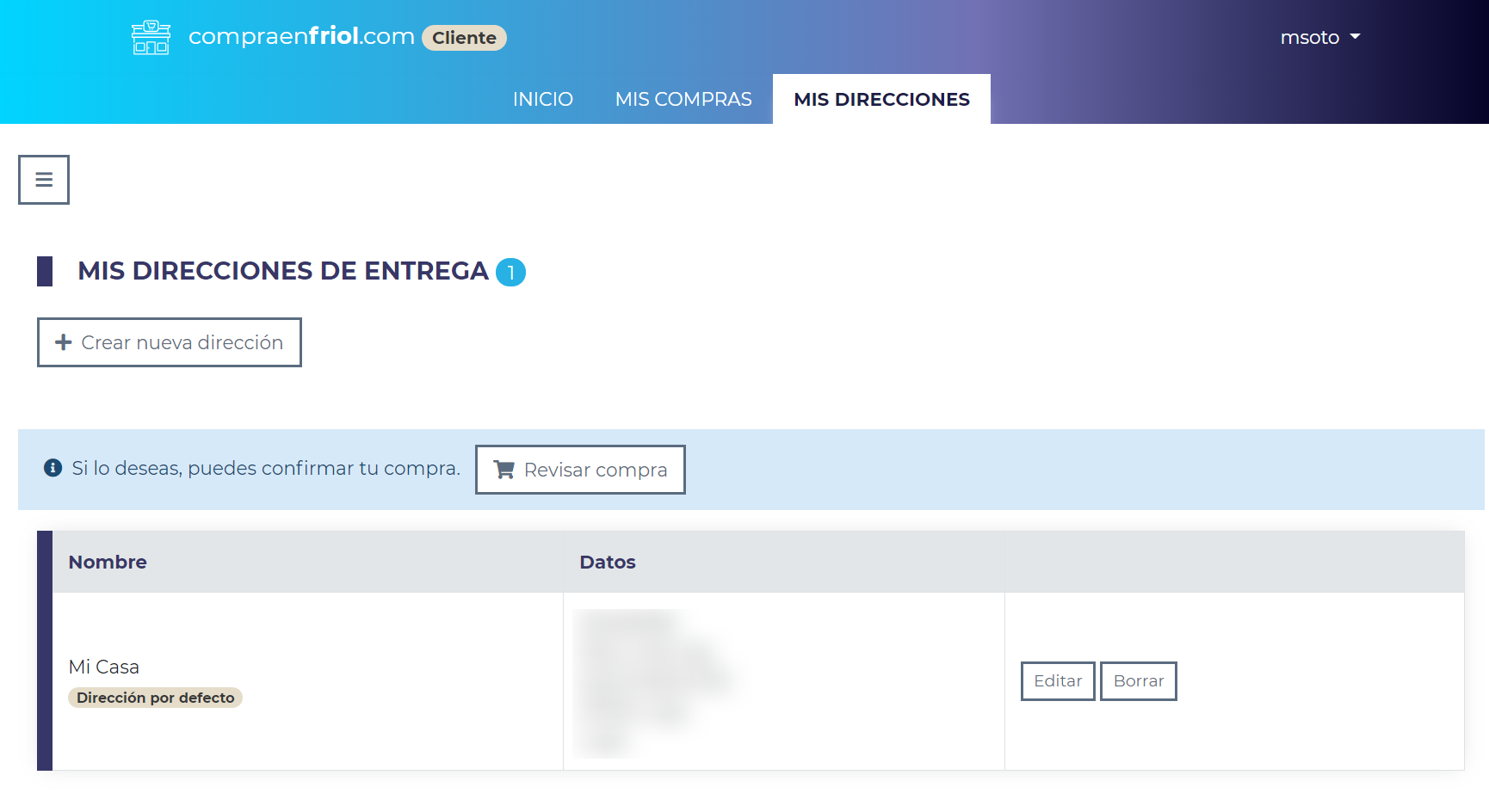 4. Selecciona una dirección de entrega (sólo primera vez)