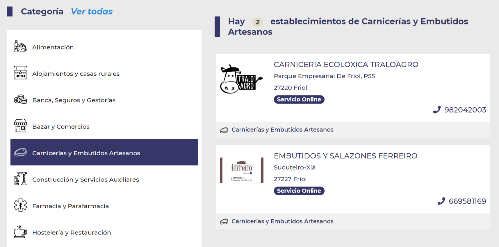Navega por el directorio de empresas. Aquellas que tengan habilitada la opción de servicio online, mostrarán una etiqueta que lo indica.