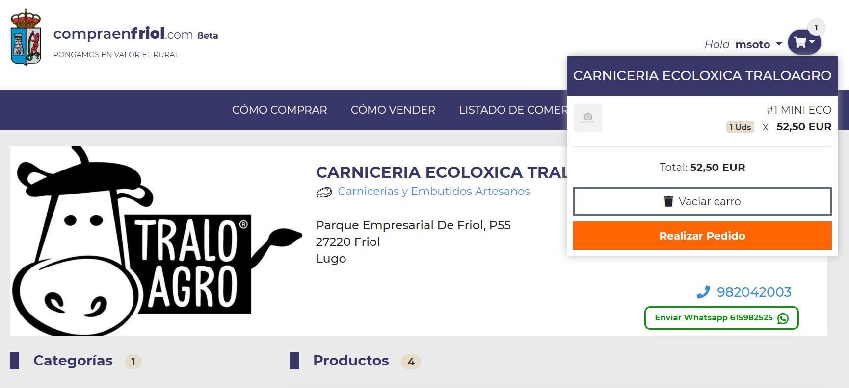 Añade los productos deseados a tu cesta de la compra y completa el proceso pulsando sobre "Realizar Pedido".